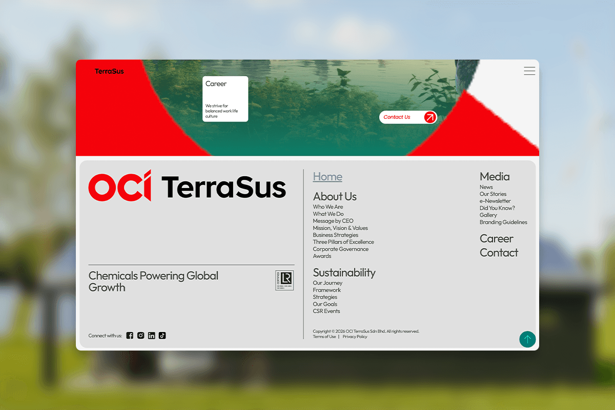 Our collaboration with OCI TerraSus was a clear example of this philosophy in action. As a company operating within the sustainability and environmental solutions space, OCI TerraSus required a website that could do more than “look good.” It needed to establish trust, communicate technical depth, and project long-term credibility—without overwhelming its audience.